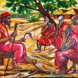 Wie überall in Afrika werden auf den Straßen farbenprächtige Gemälde angeboten. Hätte ich ein entsprechendes Anwesen, würde ich mir gern regelmäßig ein paar Bilder für meinen Afrika-Salon mitnehmen. Hab ich aber nicht 🙃