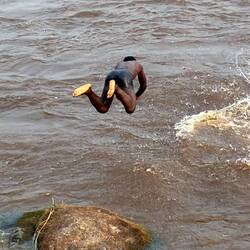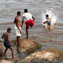 Nach der Bootstour schlendern wir selbst etwas am Ufer entlang und bestaunen die Stromschnellen, in welchen Jugendliche offenbar ein perfektes Bade- und Schwimmrevier gefunden haben.
