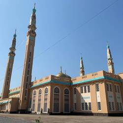 Wesentlich imposanter als die Kathedrale war die Faysal-Moschee, die größte Moschee des Landes, die ca. 1.000 Gläubigen Platz zum Gebet geben soll - oben den Frauen, unten den Männern.