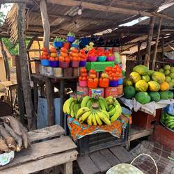 Allerorten finden sich fliegende Händler, die ihre Waren loszuwerden hoffen - vielfach vergeblich. Es ist bedrückend, dieses Heer an Wandersleuten zu sehen, die ihre Waren in Händen und auf dem Kopf tragen, schultern, buckeln und irgendwie von einem zum anderen bugsieren, in der immer wiederkehrenden und zumeist enttäuschten Hoffnung, eine Tasche, ein Paar Schuhe, eine Decke, eine Flasche Limonade, eine geschälte Orange oder eine Handvoll Cola-Nüsse an den Mann bringen zu können. Ich kaufte für 20 Leones zwei Beutel Bananenchips.