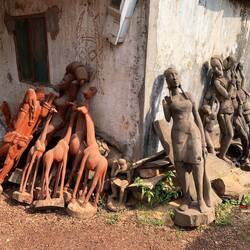 In Lola sammelte ich roten Sand für meine Sammlung. Am Ortsrand von N’zerekoré kaufte ich auf einem Schnitzerei-Markt einen Aschenbecher. Es ist nicht so, dass nicht genügend schöne Sachen da wären. Aber einerseits weiß ich nicht für wen ich was mitbringen und andererseits wie ich es transportieren sollte.