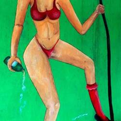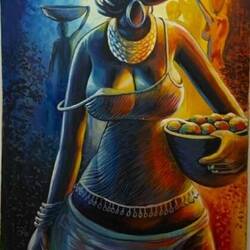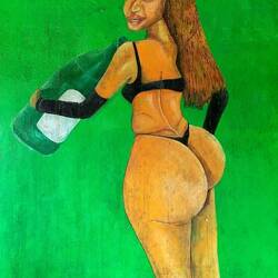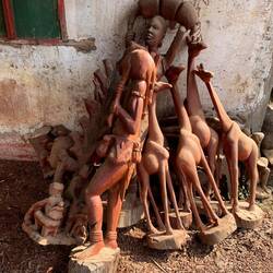 In einer Schnitzerei erwarb ich für 20 € eine Schnitzerei „Frau hebt Frau.“