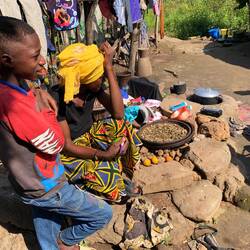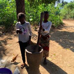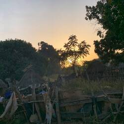 Wann genau „gerade“ war, konnten wir nicht herausfinden. Gestern war bei unserer Ankunft jedenfalls weder was davon zu spüren noch zu hören. Mahamadou zahlte uns die 90 Leones (ca. 4 €) sogar aus, welche die Tanzvorführung pro Person gekostet hätte. Ihm war es unangenehm, dass schon wieder was aus dem Programm ausgefallen war. Anschließend hieß es wieder zu pausieren, ehe es 19:00 Uhr Abendessen mit Hühnerfleisch in leckerer Gewürzsoße gemeinsam mit gekochten Kartoffeln und Bananen gab.