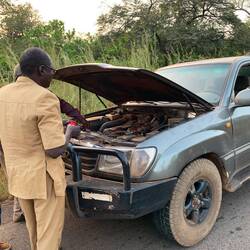 Das Auto ließ sich nicht reparieren. Mahamadou beschloss, dass das zweite Auto weiterfahren, die erste Gruppe zum Ziel bringen und die anderen später nachholen sollte.