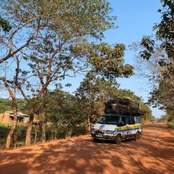 Ansonsten machten wir Straße und wippten mit und in unseren Geländewagen über bröckelnde Asphalt-Pfade, Straßen-Boller zur Geschwindigkeitsreduzierung, Schlaglöcher und Sandpisten. Der rostfarbene Staub des sandig-lehmigen Bodens färbt alle Pflanzen rechts und links der Straße in ein rotes Mars-Kostüm. Man könnte Zweifel bekommen, ob die Blätter unter dieser Dreckschicht überhaupt noch in der Lage sind, Photosynthese zu betreiben.