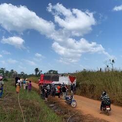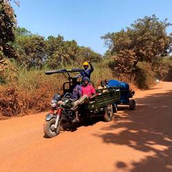 Auf dem Weg begegnen uns in fast allen Dörfern festlich gekleidete Menschen. Der örtliche Gouverneur oder vielleicht doch der Präsident organisiert eine Campagne, ein Festival mit Gratis-Getränken und -Speisen, um den Hiesigen Gutes zu tun oder sie zur Unterstützung zu bewegen. Viele tragen die Landesfahne mit sich. 🇬🇳