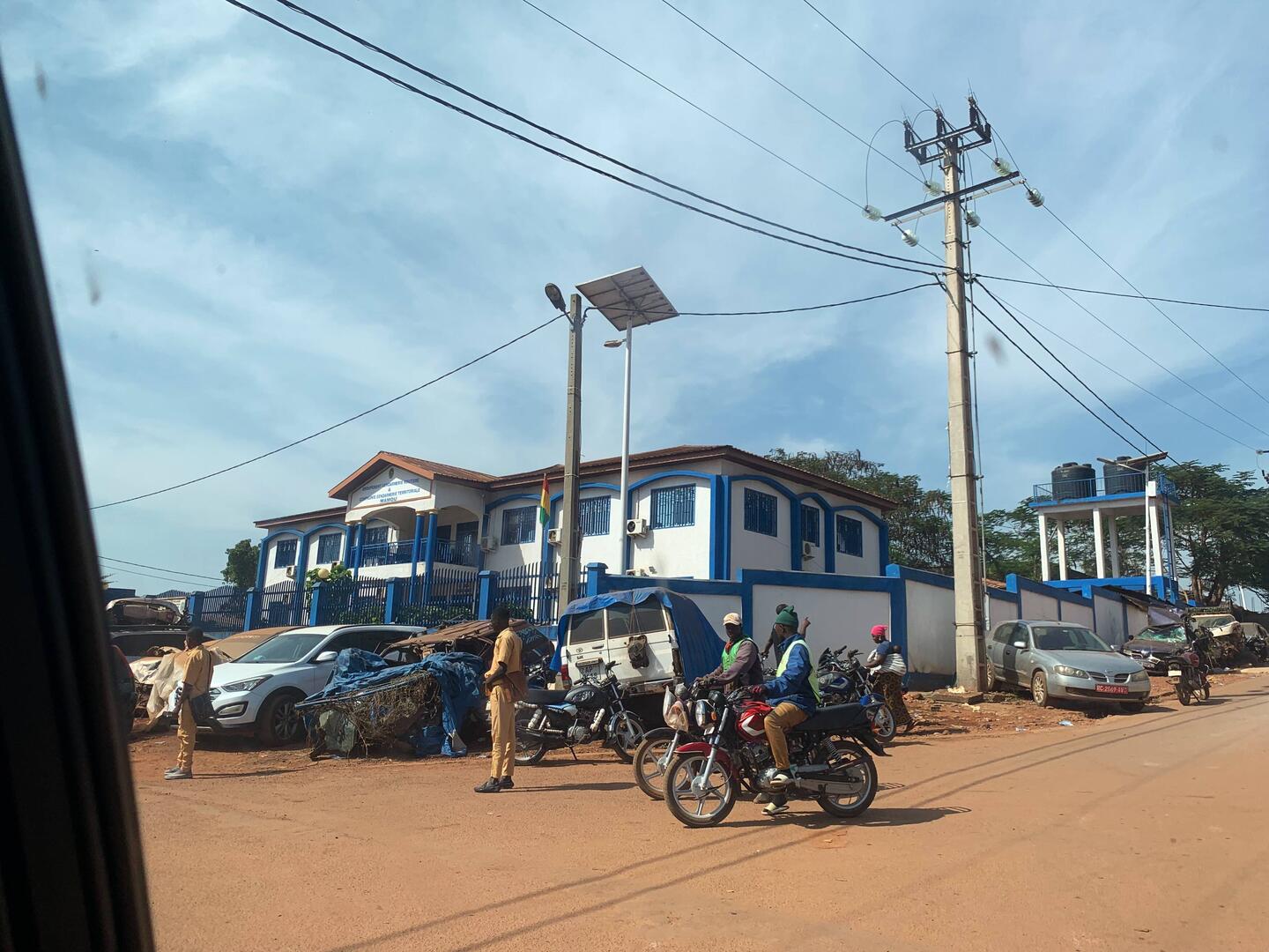 In Macenta wollte Mahamoud eigentlich nur Geld tauschen, währenddessen sich die Gruppe verteilte. Doch leider ging dem ein oder anderen das penetrante Fotografieren und Fotografiertwerden zu weit. Wie Pistolen von Verkehrspolizisten richteten sich Kameraobjektive auf jeden interessant aussehenden Fußgänger oder Mopedfahrer. Daran störten sich offenbar (zurecht) einige Passanten und beschwerten sich bei der Polizei. Diese nahm die ganze Truppe mit aufs Revier, wo wir schmorten und unser Reiseleiter sich seiner und unserer Haut im Büro des örtlichen Kommandanten erwehren musste.