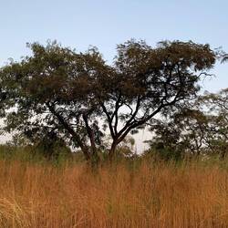 Zuerst hörte man das Springen in den Ästen, das Rascheln im Laub der Baumkronen und das Knacken der Zweige, die dem Treiben nicht standhalten konnten. Dann folgten die Blätter, die gemeinsam mit den gebrochenen Zweigen und den gerüttelten Früchten herunterfielen und wie beim Staubwischen aus den oberen Regalen weggefegt wurden und als Unrat zu Boden rieselten. Unser ortskundiger Führer sagte, dass es sich um Colobus-Affen handelte. Drei mal bekamen wir sie entfernt auf der dreistündigen Wanderung zu Gesicht. Ohne Fernglas oder Teleobjektiv war aber nur wenig zu erkennen und schon gar nichts zu fotografieren. Ein paar mal sah ich sie springen. Wenn aber einer auf einem Ast saß, um sich zu kratzen oder zu wachen oder zu dösen, dann war außer einem grauschwarzen Klumpen kaum eine Kontur, geschweige denn ein Gesicht erkennbar.
