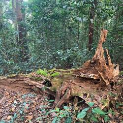 Wieder auf freiem Fuß ging es zu einem Reservat, in welchem offenbar auch Waldelefanten anzutreffen wären - allerdings nicht auf dem Weg, den wir nutzten. Es war ein Spaziergang mit Klettereinlagen im Regenwald. Schön aber unspektakulär.