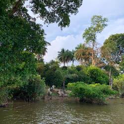Irgendjemand muss denen mal beibringen, dass sie sich außerhalb des Affenschutzgebietes befinden und gefälligst auf die Insel umziehen sollen. Die Fahrt auf dem Boot mit funktionierendem Motor war ansonsten ob der schönen Natur aber durchaus lohnenswert.