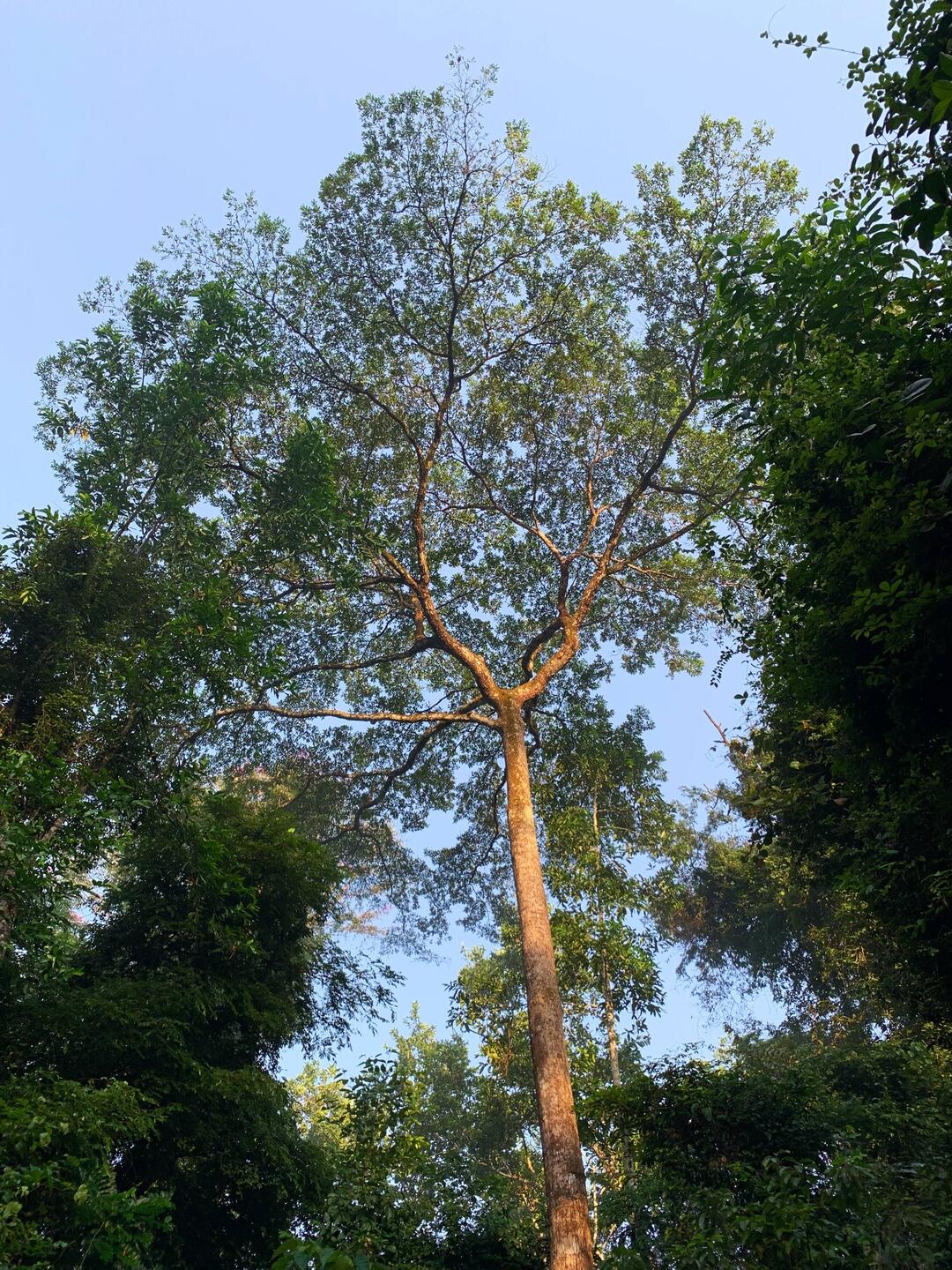 7 Uhr starteten wir zur morgendlichen Pirsch. Der erwachte Wald empfing uns mit einem Orchester voller Geräusche. Vögel fiepten, piepten, schrien, gurrten, tröteten, tuteten und riefen einander Lockendes und Warnendes zu. Insekten und Kröten halfen der musikalischen Untermalung auf ihre Weise. Ein Yellow-casqued Hornbill - den wir nicht sahen - schlug raschelnd mit den Flügeln und fabrizierte einen ventilatorähnlichen Sound, wie ein Propellerflugzeug vor dem Start.