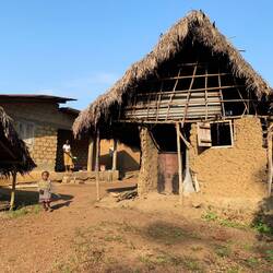 Wir gingen den Berg hinauf und den Leuten entgegen und waren rasch mittendrin statt nur dabei. Das Dorf war sauber und gepflegt. Die Lehmhäuser waren gut in Schuss. Eines wurde gerade gebaut. Die Menschen waren geschäftig, stampften Mais, spalteten Holz, wuschen, kochten oder zeigten sich Tücher, die sie gerade vom Markt geholt und nun zu begutachten hatten. Für einen kurzen Moment drehte sich aber alles um die Spontanbesucher, die offenbar eine willkommene Unterhaltung boten.