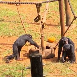 Wenn wir schon in der freien Natur keine Schimpansen zu Gesicht bekommen haben, dann sollte es in der Aufzuchtstation aber klappen.