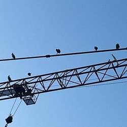 So, und nun nochmal mit Foto und Video. Es sind Störche die einen Kran besetzt halten. Was genau sie sich dabei denken- war nicht herauszubekommen.