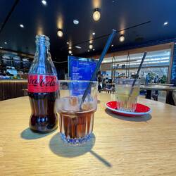 Beim Shoppen hat uns teilweise kurz der Schlag getroffen, als wir an der Kasse standen und wir einen unerwarteten Rechnungsbetrag gehört haben. Auf den Schreck gab es im Anschluss noch im Hilfiger Café eine kalte Cola & frischen Grüntee.Leer más