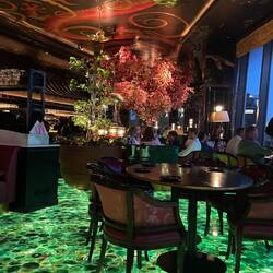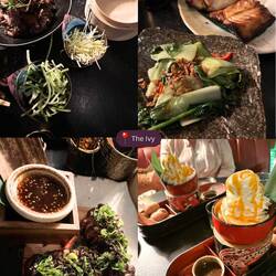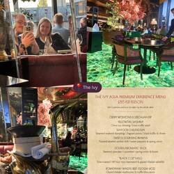 Fürs Abendessen hatten wir eine Reservierung im "The Ivy". Zuerst mussten wir trotz Reservierung einen Moment auf unseren Tisch warten. Wir haben uns zum Essen für die Premium Experience entschieden und erhielten 8 verschiedene Speisen, unterteilt und Vor- und Hauptspeise sowie Dessert. Dazu gab es Mocktails für uns (Robin hatte hier mehr Glück bei der Auswahl, in Angi‘s Glas hing zu Beginn ein riesiger Haufen Zuckerwatte und ein Veilchen, das anschließend mit dem Getränk begossen wurde, hat irgendwie ziemlich bitter geschmeckt, trotz der Zuckerbombe). Wir waren zu Beginn vom Essen ein wenig irritiert, da wir immer nur 2 Portionen erhielten. Die Kellnerin hatte auch nicht ganz den Durchblick und konnte uns dann nach Rücksprache mitteilen, dass es immer Portionen für 2 Personen zum teilen waren. Der Tisch war direkt zu Beginn sehr opulent gefüllt, da wir immer mehrere Speisen auf einmal serviert bekamen (zu Beginn eben alle Vorspeisen auf einmal). Wir hätten uns vielleicht noch eine kurze Erklärung dazu gewünscht oder dass man uns nochmals mitteilt, was sich nun auf unseren Tellern befand, haben das dann aber selbst anhand eines vorher gemachten Fotos der Karte übernommen.