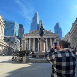 Nach dem Frühstück sind wir mit der Bahn zur Bank Station gefahren, die - wie der Name schon vermuten lässt - im Bankenviertel der Stadt liegt. Unser Ziel war die Aussichtsplattform Horizon 22, im 58. Stock von 22 Bishopsgate, dem zweitgrößten Gebäude in London nach The Sharp (worauf wir von der Plattform aus sehen konnten). Wir haben ein wenig die Aussicht auf London genossen, bevor wir dann noch ein wenig durchs Viertel geschlendert sind.Leer más