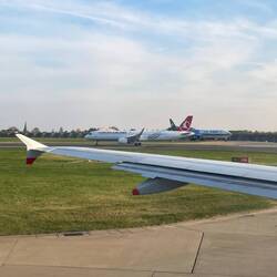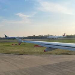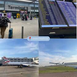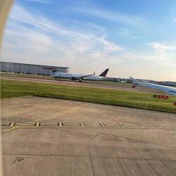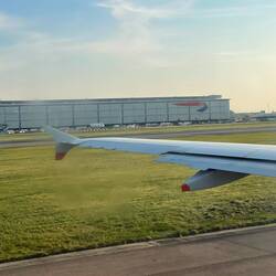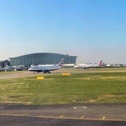 Der Anflug hat sich angefühlt, als wäre man gescamt worden 😂. Man hat einfach nichts von London gesehen, dafür gab es eine Ehrenrunde nordöstlich der Stadt und eine überpünktliche Landung, 25min früher als eigentlich geplant war. Die Ankunftshalle in Terminal 3 sah aus wie eine alte Turnhalle. Ganz komische Welt dort (Spoiler: der Abflugbereich ist sehr viel moderner und angenehmer). Immerhin hat die Einreise mit elektronischer Passkontrolle einwandfrei funktioniert, trotz erst kürzlicher Einführung des ETA. Danach ging es dann zu Fuß von Terminal 3 zu Terminal 2, wo Robin etwa eine Stunde nach meiner Ankunft landen sollte. Das war auf jeden Fall ein ordentlicher Fußweg, die Kalorien vom vorherigen Frühstück im Flugzeug waren somit auch wieder verbrannt.