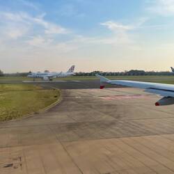 Mein Koffer wurde allerdings auch kurz raus gezogen - nach 10 Sekunden war das scheinbare Problem allerdings auch schon gelöst und es konnte weiter gehen. Mein Mini-Deospray hat wohl dubios gewirkt. Anschließend ging es schnell durch die Passkontrolle und wenige Minuten danach ging auch schon das Boarding los (überpünktlich, 35min vor Abflug).
