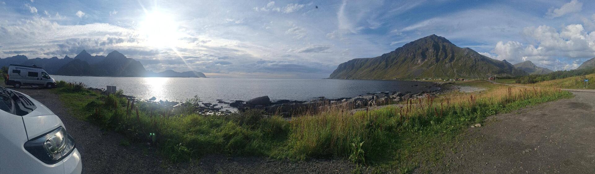 Parkplatz direkt am Wasser mit freien Blick auf einen schönen Sonnenuntergang. Aber Geräusche der vorbei fahrenden Autos. Nachts aber ruhiger.