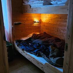 Abends spontan eine fantastische Hütte in Lapphaugen gefunden. Umtrunk mit den #34 Buxte-Bayern-Racern Ralf und Tanja in der Nachbarhütte.