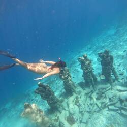 Richtig gegönnt am Zmorgebuffet, semmer vollgfrässe zum Hafe für eusi Schnorcheltour. Isch nice gsi. Erste Halt bide Unterwasserstatue uf Gili Meno, bi mer vorcho wie im ne Piranha Becki wo öbberRead more