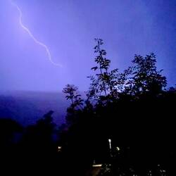 Abends ging es hier heute stürmisch zu. Auch einige Blitze waren zu sehen, die vielleicht auch für den Waldbrand auf der anderen Uferseite verantwortlich waren.