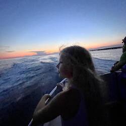 Abends brachte uns ein Taxiboot vom Campingplatz zum Hafen der schönenLes mer