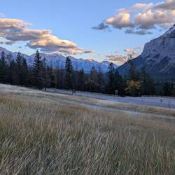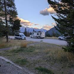 We are camping in the Tunnel Mountain camping ground just out of Banff. Temperature has dropped a lot since been here last week so we've had the merino out. We hired bikes & went out to Lake Minnewanka about 15km out of Banff was a good workout although pretty chilly at only about 8 degrees. Really appreciated our burger & chips afterwards at Eddies Burgers. Checked out the Farmers Market then we went for an early evening game drive & spotted some Elk on the golf course. Great end to the day.Läs mer
