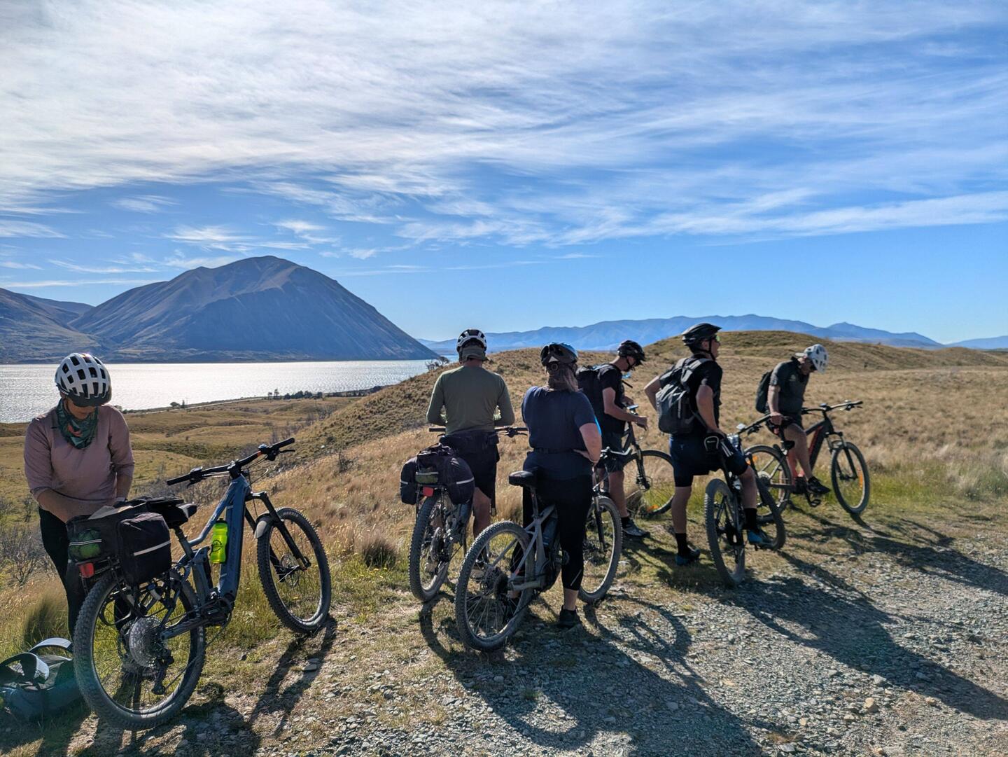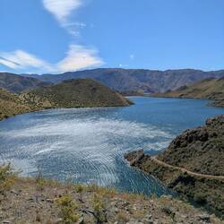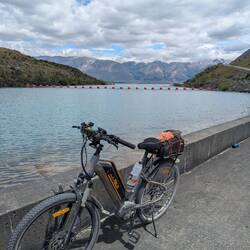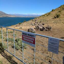 We had breakfast at the woolly ram cafe then headed off towards Lake Benmore. After going through the Sailors cutting campground we joined the trail on private land going around the edge of the lake.Read more