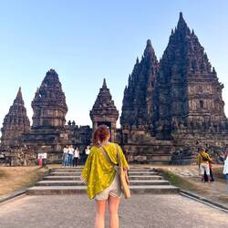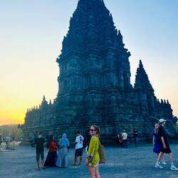 Heute habe ich die zwei größten Tempel überhaupt gesehen. Aber mal zum Anfang. Heute lief es anders als geplant, das hatte ich bis jetzt noch nicht. Ich wollte eigentlich gerne eine Sonnenaufgangstour mitmachen und bin in der Nacht gegen 3 Uhr aufgestanden und habe mich um halb 4 vorne im Hotel hingesetzt und auf mein Pick-up gewartet. 3:30….4:00….4:30…. So langsam kam es mir komisch vor… 5:00 Uhr. Ich habe dann auf Google Maps geschaut, wie weit der Tempel entfernt ist und da stand 1 Stunde. Unmöglich also für mich den Sonnenaufgang zu sehen - irgendetwas ist schief gelaufen 😳 ich habe die Dame, die mir die Tour organisiert hat angeschrieben, aber sie hat sich nicht gemeldet. Ich bin dann wieder ins Bett und war ein bisschen bedröppelt. Ich habe mir dann eine Augenbinde angelegt und Ohrstöpsel benutzt, damit ich endlich mal länger schlafen kann. Ich habe totale Probleme mit dem Schlafen, ich werde einfach nicht müde, es ist so untypisch für mich. Ich habe dann aber bis 9 Uhr geschlafen und auch um diese Zeit eine Nachricht bekommen, dass es ihr total leid tut. Sofort wurde ich angerufen und mir wurde eine sofortige Privattour angeboten , die habe ich natürlich angenommen. Wir sind dann ca 1 Stunde zum größten buddhistischen Tempel der Welt gefahren, dem Borobudur. Der Eintritt ist mit 30€ sehr knackig, aber es war total sehenswert. Wir hatten einen eigenen Guide und ich musste andere Schuhe anziehen um den Tempel nicht zu beschmutzen, diese durfte ich dann auch behalten. Es war wirklich beeindruckend und wir haben einiges über den Buddhismus kennengelernt. Sehr viel über gutes Karma und schlechtes Karma, über das Nirvana, den Himmel und die Hölle und die 7 Stufen um dorthin zu gelangen, zur Erleuchtung. Es geht um: Bildung, Beten und Meditieren, Gutes Tun, Dankbarkeit zeigen und noch irgendetwas . Das Innere des Tempels wurde uns leider verwehrt bzw. Es ist geschlossen. Zu viele Touristen haben Müll dort hinterlassen 🙄 nach dem Tempel sind wir zum Prambaran Tempel gefahren, hier musste ich wieder stolze 20€ bezahlen, aber auch diese Tempelanlage war unglaublich beeindruckend. Prambaran, ist der größte Hindu- Tempel in Indonesien und auch einer der größten in Südostasien. Parallel gab es dort auch ein Jazzfestival und ganz viele tolle Streetfood Stände. Ein toller Tag 🧡 für den privaten Taxifahrer habe ich übrigens für einen 8 Stunden Tag 12€ bezahlt. War auch günstiger, weil es eine Entschädigung für mich war.Read more