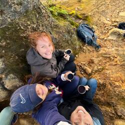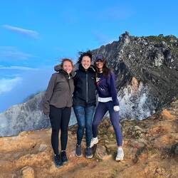 Am nächsten Tag , bzw. in der Nacht bin ich um 3 Uhr aufgestanden : Und wieder eine Vulkan Sonnenaufgangstour, mit den beiden aus UK und zweien aus Deutschland (voll cool sie machen ein Jahr Sabbat). Der Vulkan war relativ nah an meinem Hotel und wir sind vom Parkplatz ca. 1 Stunde hoch gelaufen, es war schon ein bisschen anstrengend. Oben endlich angekommen war es so unglaublich kalt, wie wir es alle noch nicht erlebt haben. Uns sind richtig die Finger eingefroren. Generell war es dort oben eher bewölkt, aber ein bisschen Sonnenaufgang konnten wir sehen. Wir sind auch in den Krater reingelaufen, wo überall Schwefel qualmt - habt ihr das schonmal gerochen? Bah! Richtig nach ekligen Eiern, aber spannend war das. Wir haben uns dann auf einem Schwefelstein aufgewärmt 😅 nach dem Vulkan ging es zurück in mein Hotel, dort gab es für alle ein kurzes Frühstück und weiter ging es zu den Hotsprings, das war eher wie eine Therme, aber sehr angenehm nach dem kalten Vulkan. Zurück ins Hotel, Sachen packen und ab nach Lake Toba. Wir waren insgesamt so 4 Stunden unterwegs. Wir mussten noch eine Stunde auf unsere Fähre nach Samosir warten und dann ging es auf ein buntes cooles Boot. Ihr müsst euch vorstellen, die Insel in Lake Toba (Samosir) ist so groß wie Singapur. Das Boot hat verschiedene Hotels angefahren. Auf dem Boot lief richtig coole Musik und wir haben uns auch ein Bier mitgenommen. Toller Tag 👍💕Read more