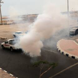 Zum Frühstück roch es plötzlich massiv nach Chlor... 😷 als ich aus den Fenster schaute war klar was so stinkt: Desinfektion im grossen Stil. Strasse, Gehweg, Häuserwände, Laternen,Read more