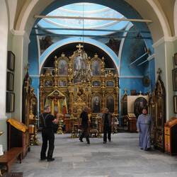 Dann sind wir in Russland. Auf dem Weg zum Tagesziel Pskow machen wir noch einen Abstecher zu der sehr eindrucksvollen Klosteranlage von Petschory im unmittelbaren Grenzbereich.