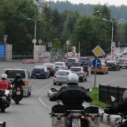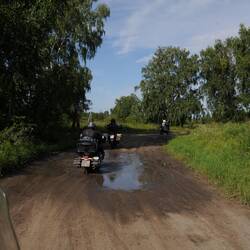 Die Fahrt durch die Stadt ist schon eindrucksvoll, für die Teilnehmer vor allem unerwartet! Wir verlassen Tjumen auf Nebenstraßen und fahren dann auf der E 22 weiter ostwärts. Die Nähe zu Kasachstan macht sich bemerkbar. Der Verkehr ist dichter, die Magistrale hat teilweise zwei Spuren je Richtung. Es zeigen sich die ersten Verschleißerscheinungen an den Motorrädern, eine Kleinigkeit kommt zur nächsten.