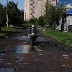 Das Hotel in Barabinsk ist russischer Standard. Nach der Vorstellung der Rezeptionistin sollen wir in 4-Bett-Zimmern schlafen. Das sehe ich anders, zumal wir auch anders gebucht haben. Schließlich können wir es aber zur Zufriedenheit aller regeln. Mit einigen mache ich noch einen Abstecher nach Kuibyschew. Das ist die ältere und ehemals wichtigere Stadt in der Nähe. Aber auch hier ist das Beste schon abgefallen. Beeindruckend sind aber hier, wie auch in anderen Orten die zahlreichen und oft großen Kinderspielplätze. Daran könnte man sich in Deutschland ein Beispiel nehmen. Unterwegs werden wir widerholt angesprochen, nach unserem Woher und Wohin befragt, zu einem bevorstehenden Motoradtreffen am kommenden Wochenende eingeladen und mit ‚Daumen hoch‘ verabschiedet.