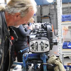 Anschließend trennen wir uns. Egon fährt zu einer Schwerhörenden Schule. Dort gibt er, wie auch schon im letzten Jahr, einige Hörgeräte und Batterien aus unserer Charityaktion ab, zur großen Freude der Leiterin. Dann macht er sich mit drei Begleitern auf den Weg zu einer „Werkstatt“, die ihm Freunde genannt hatten. In der Werkstatt eines Motoradclubs müssen sie ein wenig warten. Doch dann geht es zügig zur Sache. Bei der Roxter ist es glücklicherweise kein Lagerschaden, die Geräusche werden durch eine gebrochene Feder in der Einspritzanlage verursacht. Sie wird nachgebogen und es geht wieder. Nur die anschließende Synchronisation ist etwas zeitraubend. Dagegen ist das Ersetzen einer verlorenen Schraube bei der 800 GS ein Klacks. Nur das „Stottern“ der bei der 650 GS lässt sich nicht nachprüfen. Es bleibt bei unserer Vermutung, dass es sich um schlechtes Benzin oder Benzin oder um Wasser im Tank handeln müsste. Anschließend machen sie sich die vier mit fünf Stunden Verspätung auf den Weg zu uns.