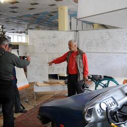 Bingi gibt eine gute Gelegenheit, russisches Dorfleben hautnah zu erfahren. Es besteht die Möglichkeit zu einem Ruhetag in Bingi, was einige nutzen. Mit den meisten fahren Stefan Semken und ich auf eine Rundtour Richtung Jekaterinburg. Wir besuchen zunächst in der Nähe des schöne alte Haus und fahren dann weiter nach Pyschma, am Stadtrand von Jekaterinburg. Dort gibet es ein riesiges Fahrzeugmuseum mit alten Autos und vor allem mit Militärfahrzeugen jeder Art.