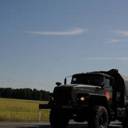 Wir durchfahren heute die Region Tjumen – zur Relation, sie ist so groß wie Spanien! Im Ural-Gebiet finden wir offensichtliche Anpflanzungen von Nadelwald. Dann kommt die Grenze zu Sibirien, ein unscheinbares Schild am Wegesrand, leicht zu übersehen. Aber gewusst wo – natürlich Gelegenheit für einen Fotostopp. Unendlich große Felder und riesige Stallungen befinden sich entlang der Straße. Das Land ist unglaublich eben. Die Wolken hängen anfangs noch sehr tief. Aber es regnet nicht mehr und die Temperaturen steigen langsam auf über 20 Grad.