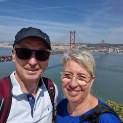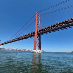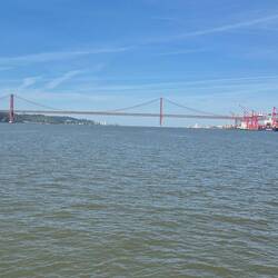 Bei wunderschönem Wetter haben wir die Küste der Hafenstadt mit dem Touriboot erkundet. Eine prima Perspektive auf das Christo Monument in Almada und die rote Brücke die die Stadtteile verbindet.Read more