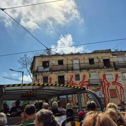 Wir haben uns für ein Hopp on, hopp off Ticket zur Stadterkundung entschieden und sind nach der Bootstpur in die historische Straßenbahn umgestiegen.