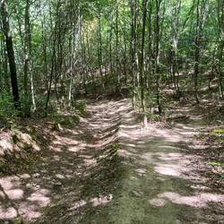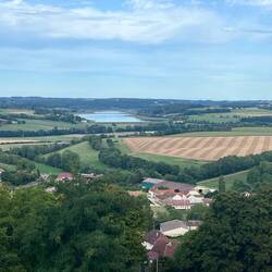Big decision to make on the walking. The route took 16 miles to wander round a lake or I could take a road which got there in 6. It was a beautiful day and I had no excuse for the shortcut so I hoofed round the lake. Mostly in shade but still hot. Used the Tilley hat for only the second time. I suspect I look more of a prat than usual but too bad.