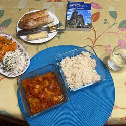 No restaurant but there is a supermarket in walkable distance. Went for gazpacho and a sort of “prawn on a bed of cold mixed veg” thing with a lemon meringue pie to follow. For those interested in such things a litre of gazpacho is quite a lot. And I have some things for breakfast/lunch tomorrow. Doing my best with the f & v stuff.Meer informatie