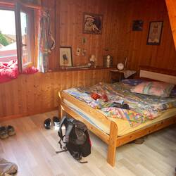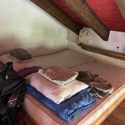 Managed to book a pilgrim’s place for tonight at the last minute. Quite relieved as I have avoided wild camping so far and I was in no hurry to start. This place is a bit grim - the shower has been blocked since the last occupant had a shower but it is only 20€ and so far I seem to be the only occupant. Just one bedroom with 2 sets of bunk beds crammed in.