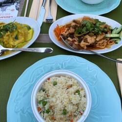 As you would expect more beer again tonight. You would think madam was on holiday rather than sharing a deeply meaningful pilgrimage. Tonight it was washing down a very pleasant Thai.Meer informatie