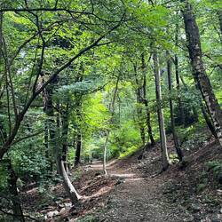 Heavy rain all night. Didn’t encourage an early start. And we couldn’t get to our next place, a BnB, before 5pm anyway. The book had various warning comments about this morning’s walk. “The most difficult stretch of the entire Via Francigena”, “precarious footing”, “scramble among boulders”, “slippery stretch among rocks and tree roots with an abrupt drop-off down to the river 20m below”. The train was recommended and Glynice happily took it. Spending a couple of hours sitting in a cafe knitting and blethering to anyone remotely in earshot while consuming coffee with lemon meringue pie seemed a better idea than a very wet scramble. In truth it did live up to its billing, helped by 24 hours of rain, plenty of mud, lots of fallen leaves, and wearing shoes with very little tread left. Nearly 3 hours of very focused hard work. Almost every step had to be carefully placed. Luckily the “route” was very well marked out because in amongst the boulders I wouldn’t have had a clue where to go otherwise.