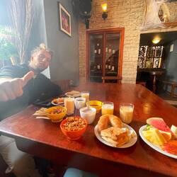 Enfin viens l’heure de manger ! On sors manger dans un tout petit resto avec 2 tables seulement et 2 choix possible : poulet fris et escalope. On prendra tous les deux une escalope avec frites et riz. Puis s’en suit une soupe avec un genre de poisson, c’est bon. Avec un petit Fanta en prime on payera 34Bs (équivalent à 5€) pour deux personnes 😱 Mais néanmoins les boliviens ne sont pas fan de dessert. Et nous on est des gros gourmand on s’arrête donc acheter des gâteaux 😋 Que l’on va dévorer rentrés à l’auberge autour d’une petite tasse de lait. ( Oui oui Laurence Pl a bien mangé des Oréo trempé dans du lait🙃).