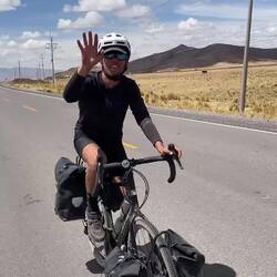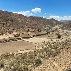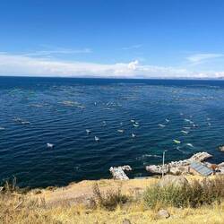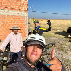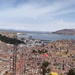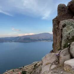 Il est déjà 16h, et on se dit que le lac Titicaca est seulement à 20km et que ça serait vrmt cool d’aller dormir près de lui ce soir. On a encore le temps. Alors on fonce. La route est comme le matin avec en plus du vent de côte assez important. On veut dormir vers le premier port que l’on rencontre. Alors, juste après un barrage militaire on tourne à droite. Je crois qu’on avait pas le droit parce que là, une dizaine de militaires se mettent à nous courir après pour nous dire que c’est une zone interdite. En fait, le port international est devenu un port militaire récemment. Bon soit, on continue notre route alors. 2km plus loin on voit un stade de foot avec une maison à côté. On pense que la maison appartient au gardien du stade, car celui ci est grillagé pour qu’on ne rentre pas. Non, c’est simplement un fermier. Très gentil il accepte qu’on dorme dans un de ses champs. On fera un petit tour de ses vaches avec lui avant de continuer notre route jusqu’au lac, la lumière y est charmante. On y est ! Au lac Titicaca ! On est déjà en extase après à peine 30 secondes à ses pieds. Hâte des 3-4 prochains jours à longer et dormir près de ses rives. On retourne à la tente se faire à manger, notre hôte nous offre une tisane dans un énorme thermos. Et au final, on se dit qu’on est jamais mieux que lorsqu’on est sur notre vélo et que l’on bivouac 😁.Read more