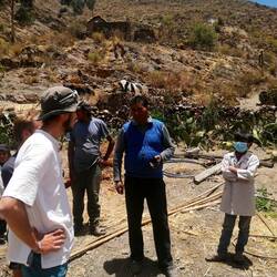 7h, on se met en route, au moment où le soleil fait son apparition. Les 28 premiers km, globalement descendants sont avalés en une heure, on se dit que la journée va être rapide. Puis un premier barrage de péruviens, à l’entrée d’un gros village, ils sont assis au milieu de la route entre pierres et barbelés. On ne comprend pas trop, on ne s’y attendait pas, mais on nous dit de passer. Bon ok. Alban semble comprendre que ça a un rapport avec l’eau.