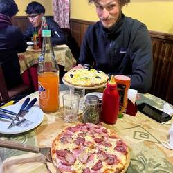 Le soir on se laisse tenter par les pizzas de l’hôtel, hum est-ce une bonne idée sachant qu’on a encore tous les 2 la ch..😡🤬🥵🥵 Pas grave on se laisse tenter et on a raison car au final aucun impact sur nos intestins😋😋 Bref on est enfin prêt à remonter sur nos vélos !Read more